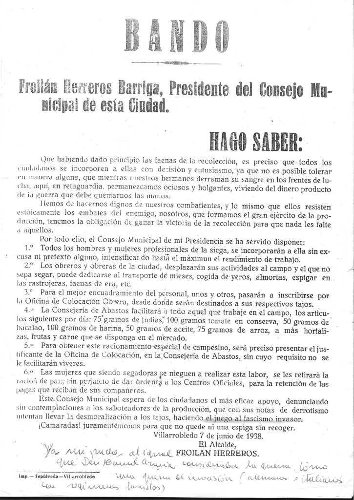 Maruja rememora el papel que su padre tuvo como alcalde durante el transcurso de la guerra (ejerciendo el cargo desde 1937 hasta 1939), en el cual actuó como moderador en los conflictos que surgieran en Villarrobledo, salvando vidas de ambas partes del espectro político. Como cuenta Maruja, su padre “trataba con personas, no ideas.”